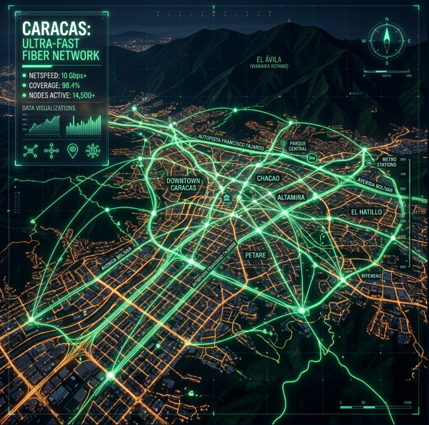 El Internet Más Veloz de la Gran Caracas en tu Comunidad con tecnología 100% Fibra Óptica Real.